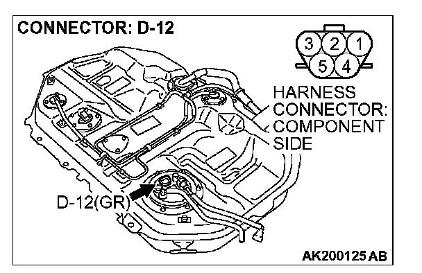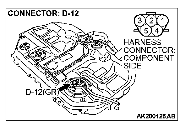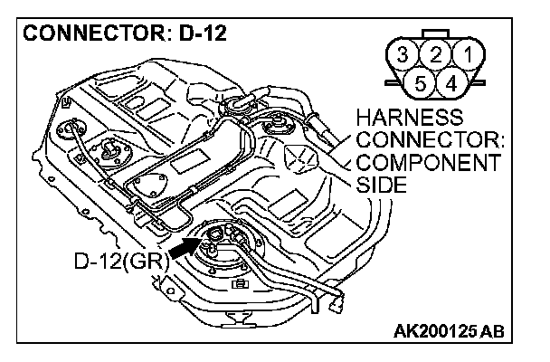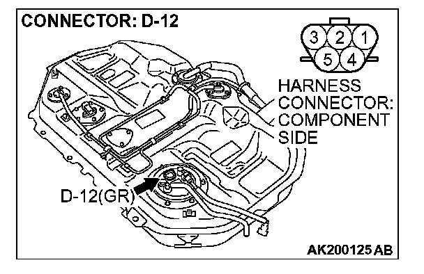 STEP 11. Check for continuity at fuel pump harness side connector D-12.