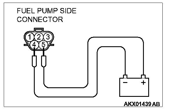 2. Use jumper wires to connect fuel pump connector terminal No. 5 to the positive battery terminal and terminal No. 4 to the negative battery terminal.