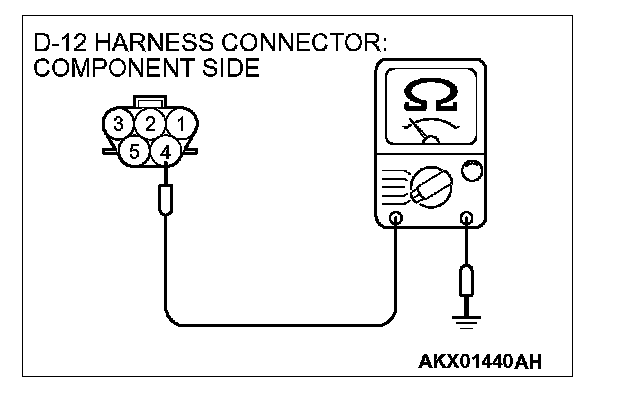 1. Disconnect the connector D-12 and measure at the harness side.