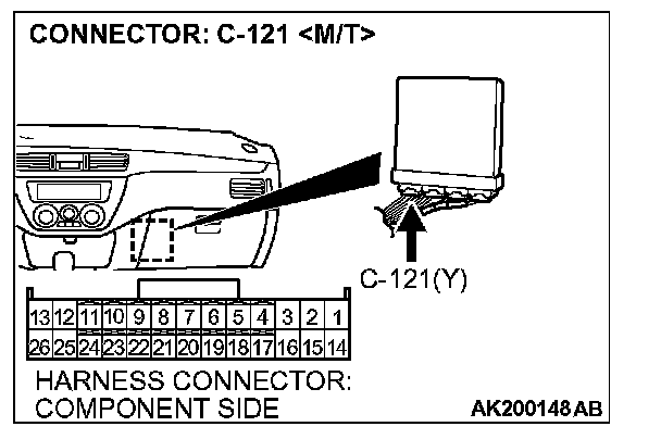 b. Check the harness wire between injector connector B-20 (terminal No. 2) and ECM connector C-121 (terminal No. 14)
