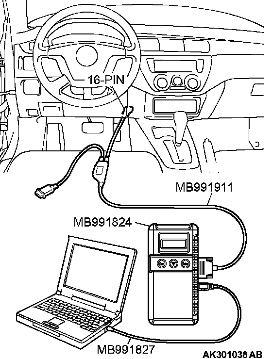 CAUTION: To prevent damage to scan tool MB9911958, always turn the ignition switch to the "LOCK" (OFF) position before connecting or disconnecting scan tool MB9911958.
