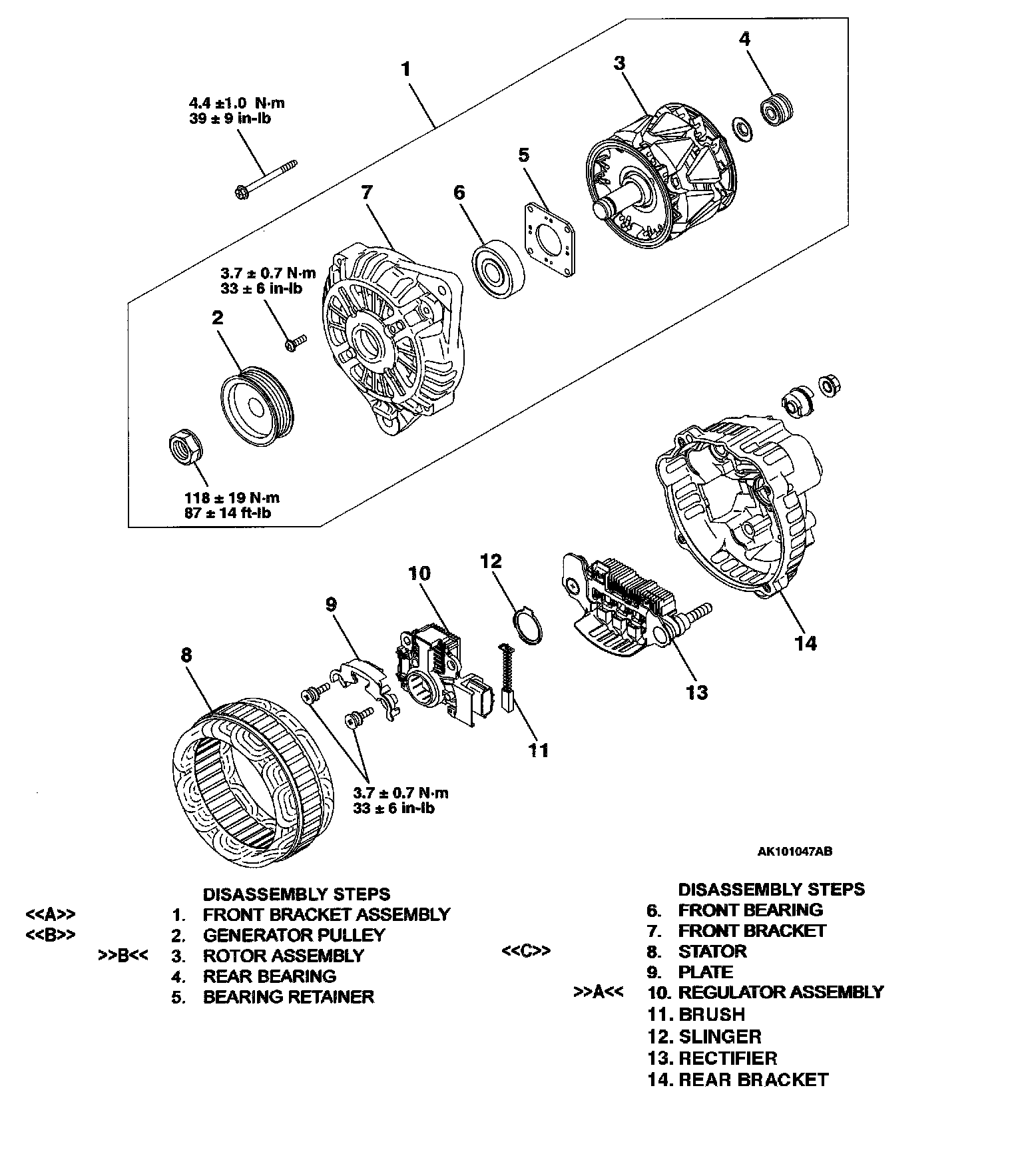 <> FRONT BRACKET ASSEMBLY REMOVAL
