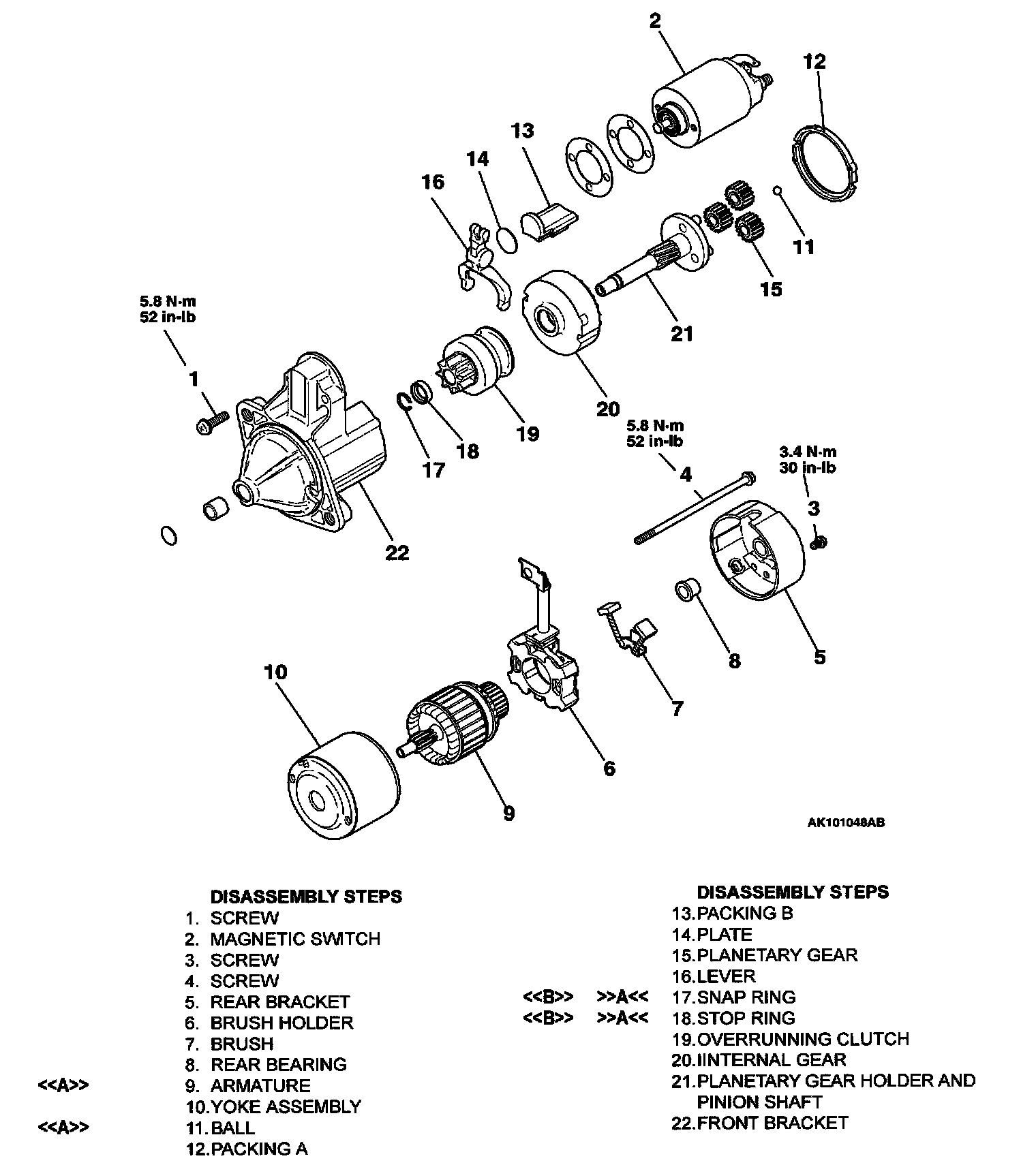CAUTION: When removing the armature, take care not to lose the ball (which is used as a bearing) in the armature end.
