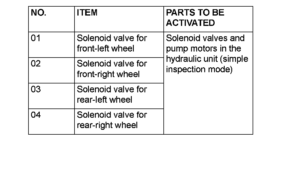 NOTE: If the ABS-ECU runs down, actuator testing cannot be carried out.