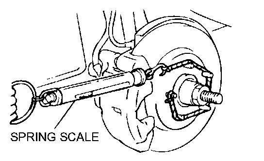 3) Use a spring scale to measure the hub torque in the forward direction. Record hub torque with pads removed.