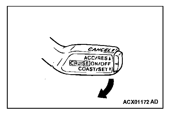 NOTE: When the vehicle speed reaches the low limit [approximately 40 km/h (25 mph)] during deceleration, the auto-cruise control will be cancelled.