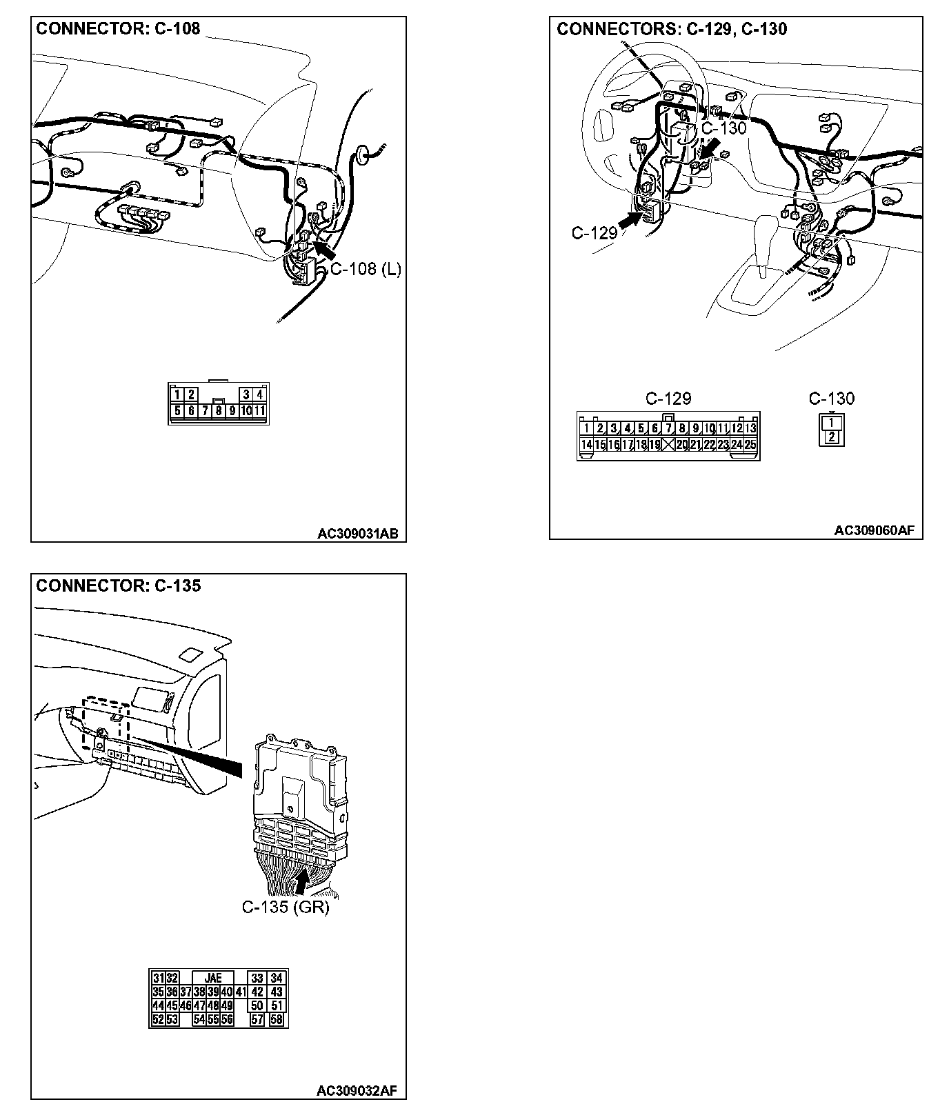 STEP 3. Check clutch pedal position switch connector C-130, ECM connector C-135, intermediate connectors C-108 and C-129 for loose, corroded or damaged terminals, or terminals pushed back in the connector.