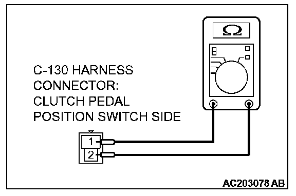 STEP 5. Check the harness wire between clutch pedal position switch connector C-130 terminal 1 and ground wire for damage.
