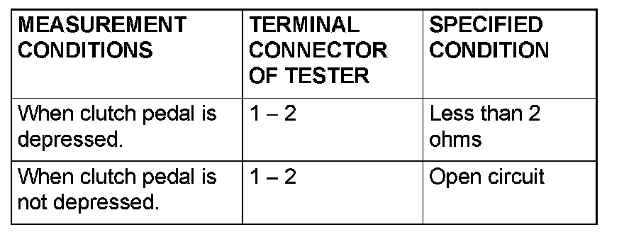 - voltage should measure 0.5 volts or less. (When clutch pedal is depressed.)