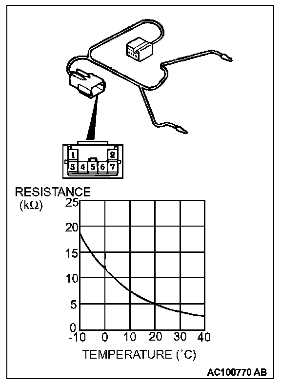 Measure the resistance between connector terminals 4 and 5 under at least two different temperatures. The resistance values should generally match those in the graph.