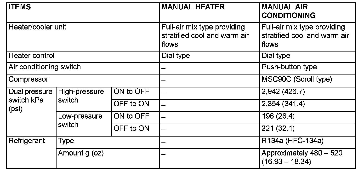 Air gap (magnetic clutch) mm (in) 0.3 - 0.5 (0.012 - 0.020)
