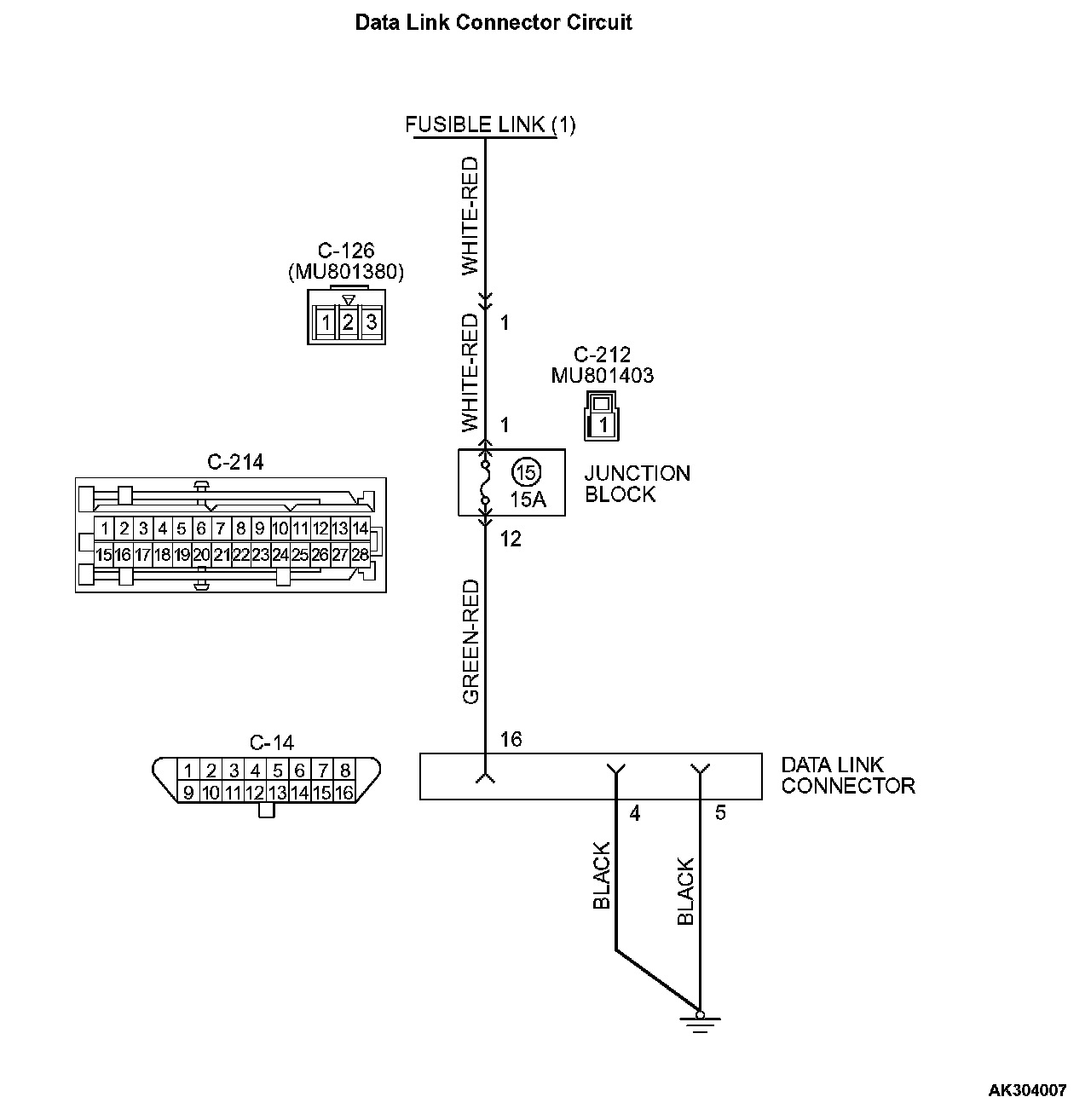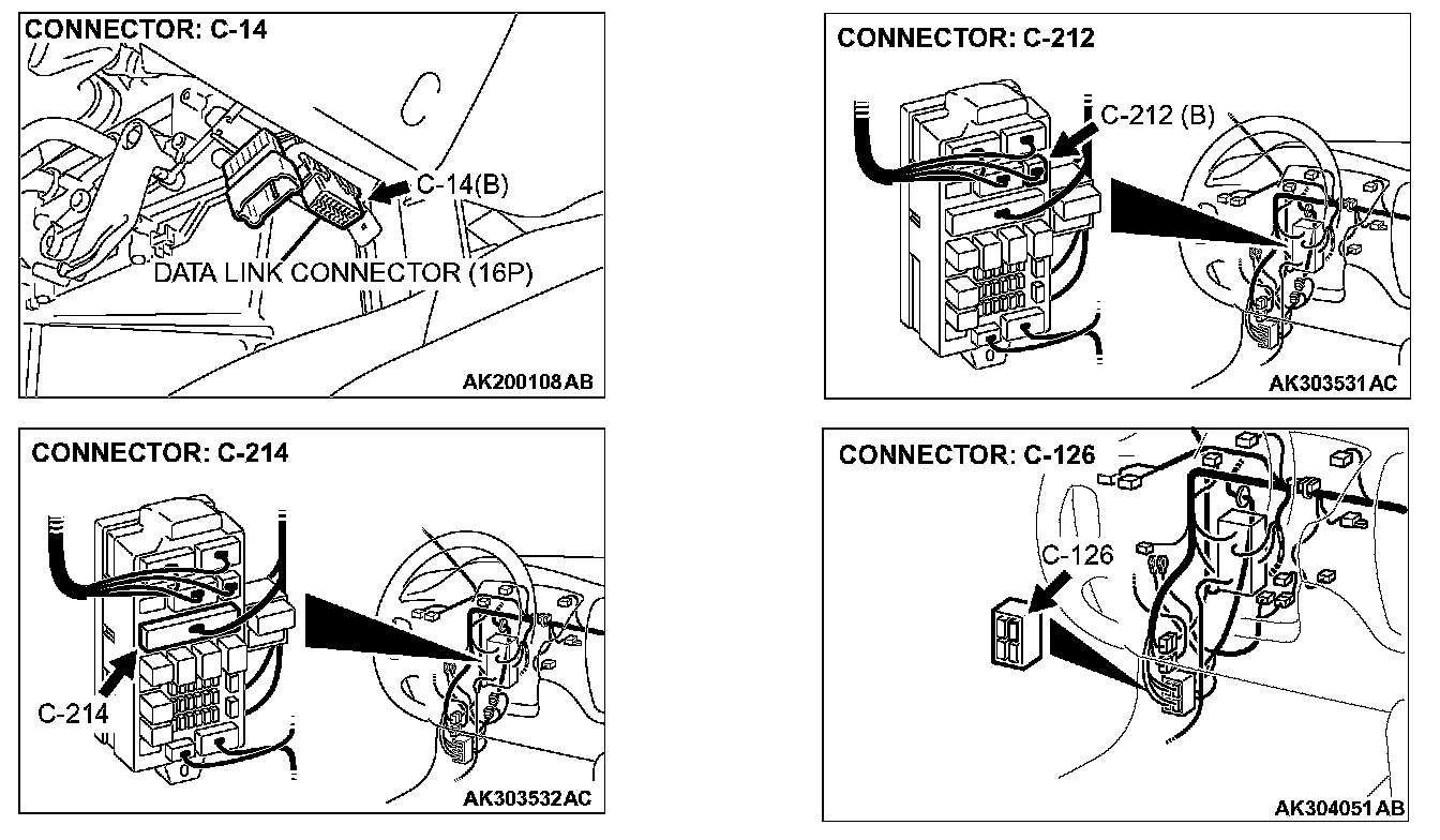 NO: Check harness connectors C-126, C-212 and C-214 at intermediate connector for damage, and repair or replace as required. Refer to Harness Connector Inspection. If intermediate connectors are in good condition, repair harness wire between fusible link 1.and data link connector C-14 (terminal No. 16) because of open circuit. Then confirm that the malfunction symptom is eliminated.