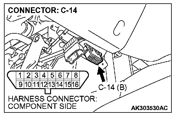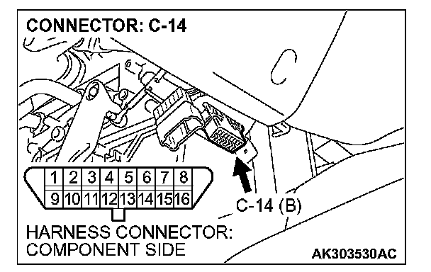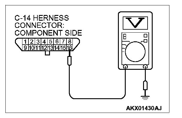 STEP 1. Measure the power supply voltage at data link connector C-14.
