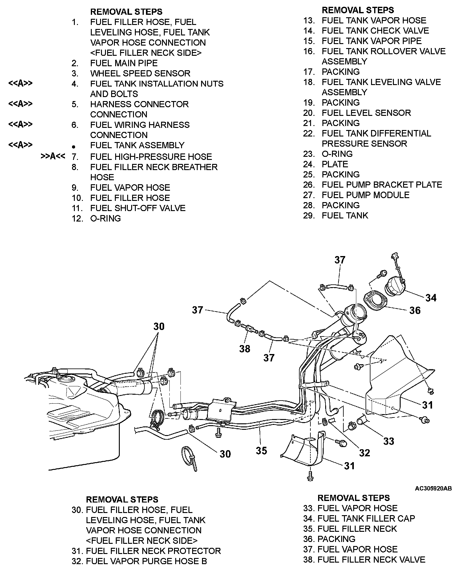 <> DISCONNECT HARNESS CONNECTOR/FUEL WIRING HARNESS/FUEL TANK ASSEMBLY REMOVAL