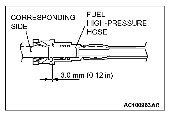 CAUTION: After connecting the quick action joint of the fuel high-pressure hose, pull the joint lightly away from the quick action joint to confirm that it is secure. In addition, confirm that there is a play of approximately 3.0 mm (0.12 inch) at the joint.