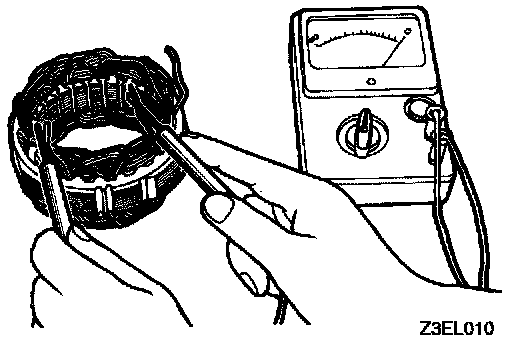 2. Check the continuity between the coil and the core. If there is continuity, replace the stator.