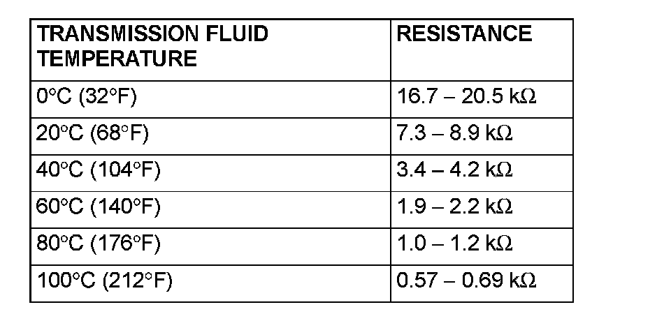 3. If the transmission fluid temperature sensor resistance is outside the specified range, replace the transmission fluid temperature sensor.