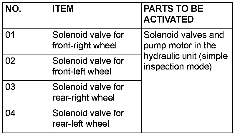 NOTE: If the ABS-ECU runs down, actuator testing cannot be carried out.