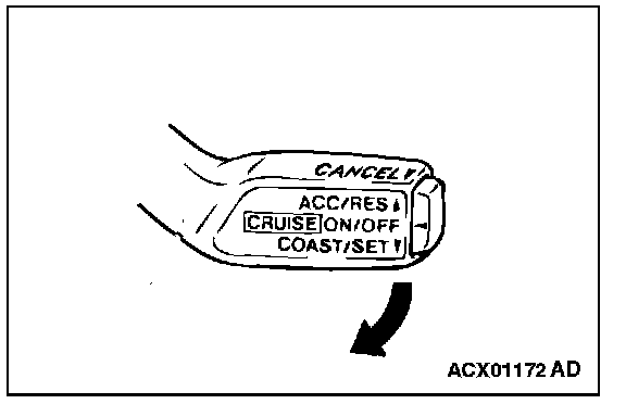 NOTE: When the vehicle speed reaches the low limit [approximately 40 km/h (25 mph)] during deceleration, the auto-cruise control will be cancelled.