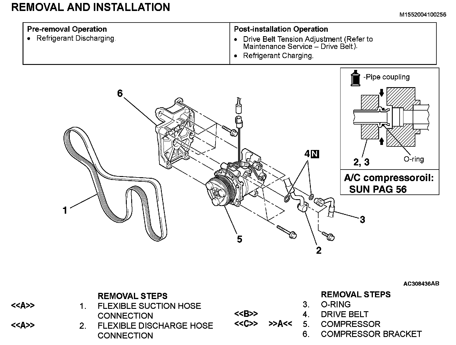 COMPRESSOR ASSEMBLY AND TENSION PULLEYREMOVAL AND INSTALLATION