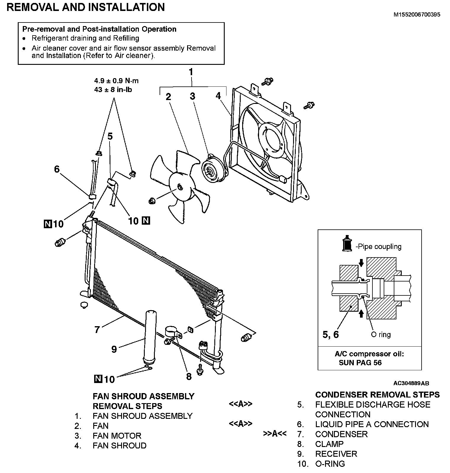 CONDENSER AND CONDENSER FAN MOTORREMOVAL AND INSTALLATION