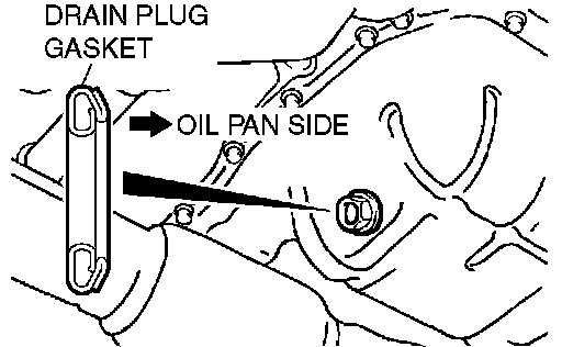 4. Install a new drain plug gasket so that it faces in the direction shown in the illustration, and then tighten the drain plug to the specified torque.