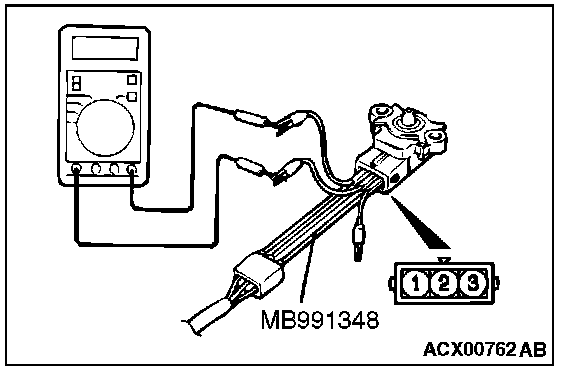 2. Turn the ignition switch to "ON" and measure the output voltage between terminals 2 and 3.