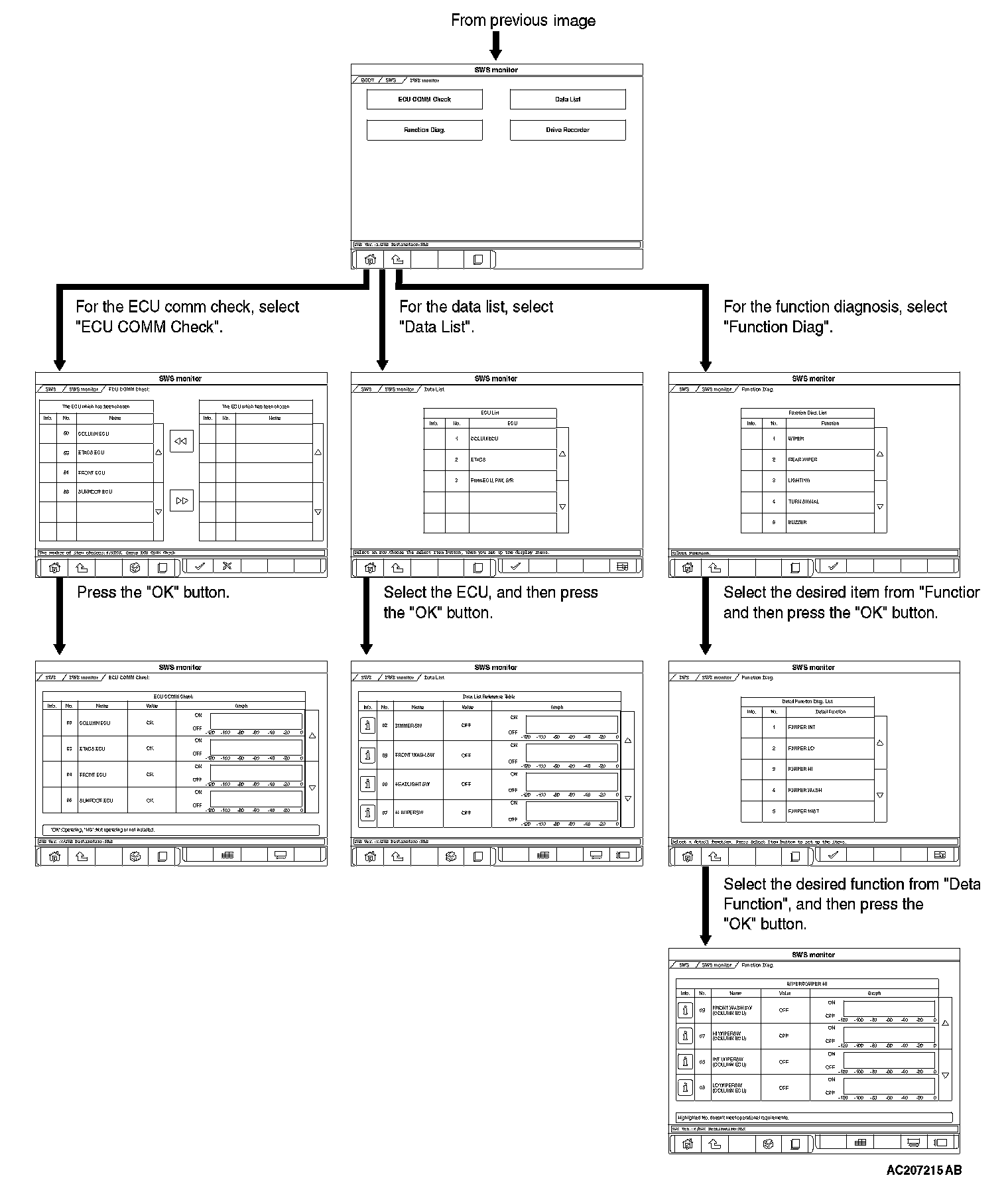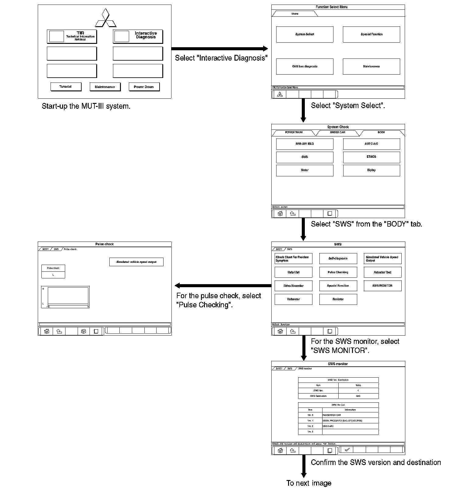 To carry out troubleshooting, operate scan tool MB991958 (MUT-III Sub Assembly) as shown.