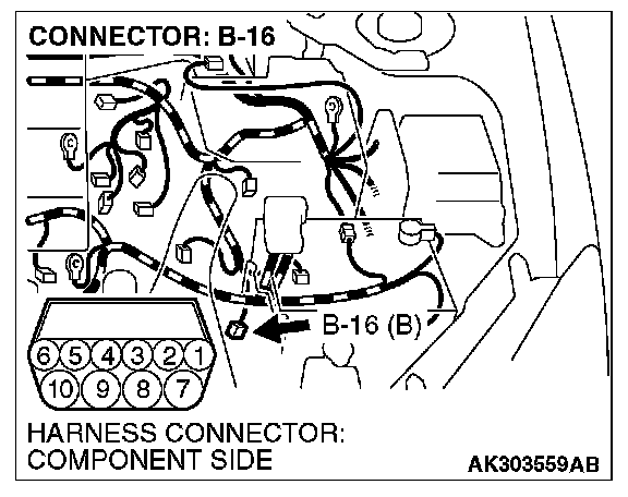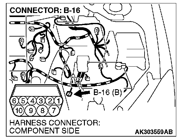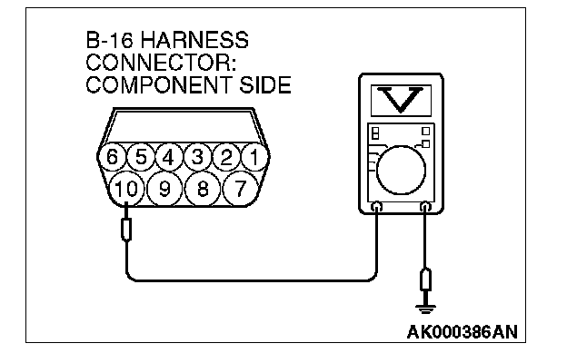 1. Disconnect the connector B-16 and measure at the harness side.