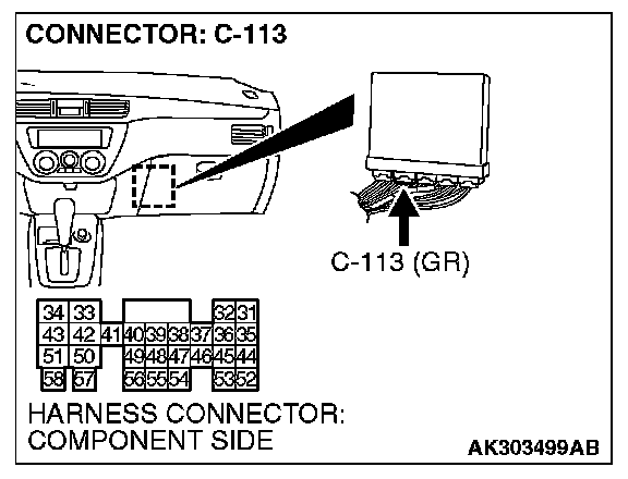 STEP 4. Check connector C-113 at PCM for damage.