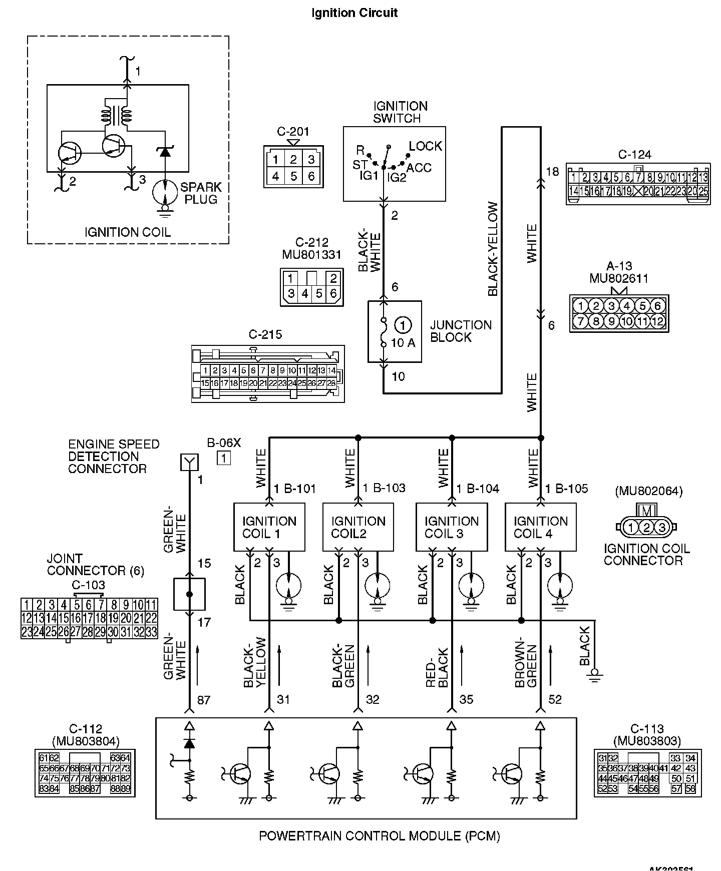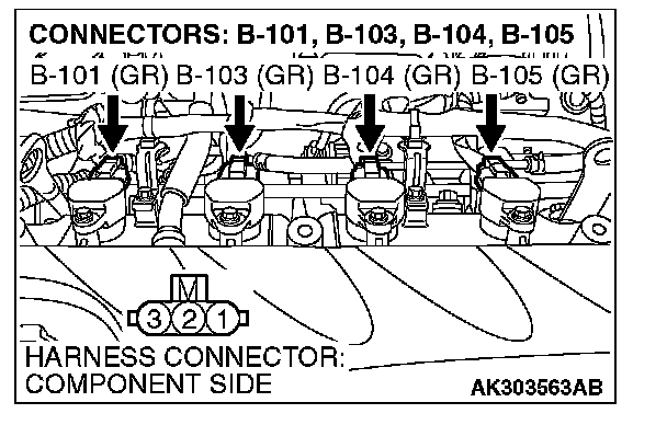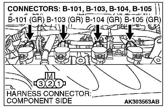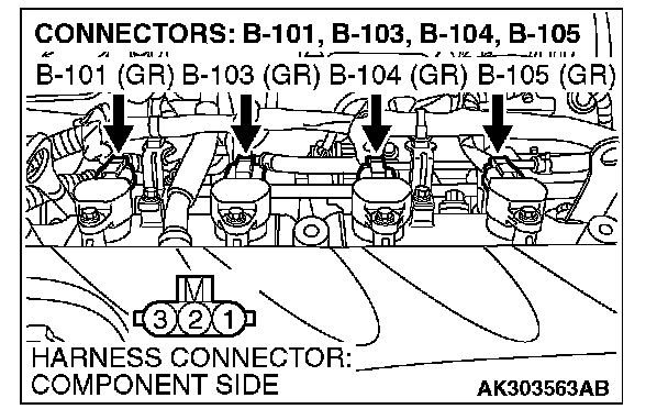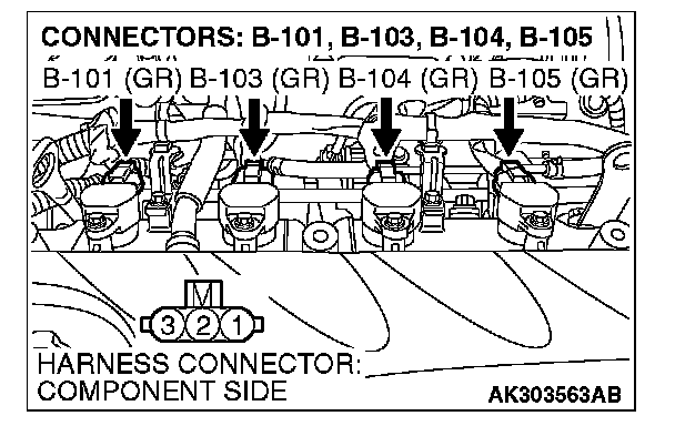 STEP 4. Check the circuit at ignition coil harness side connector B-101, B-103, B-104 and B-105.