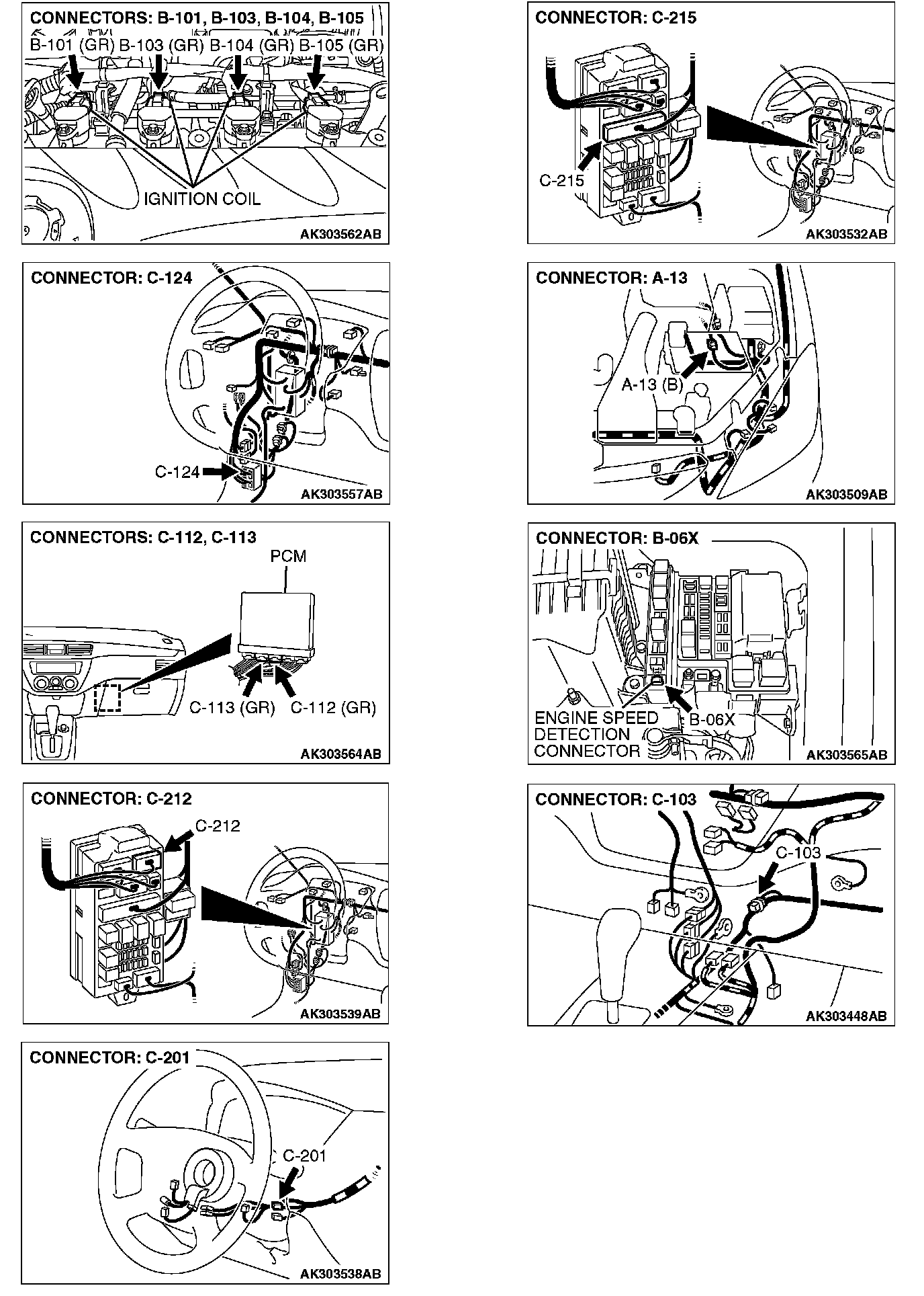 STEP 9. Check harness connector B-06X at engine speed detection and harness connector C-112 at PCM for damage.