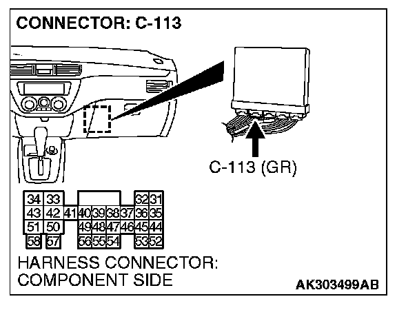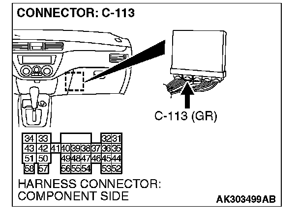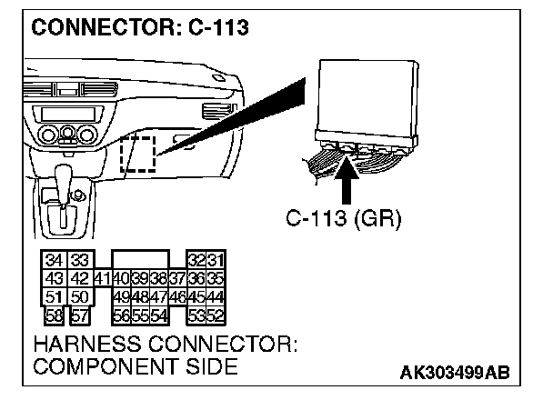 STEP 5. Check harness connector C-113 at PCM for damage.