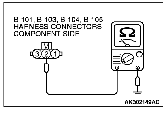 1. Disconnect the connector B-101, B-103, B-104 and B-105 and measure at the harness side.