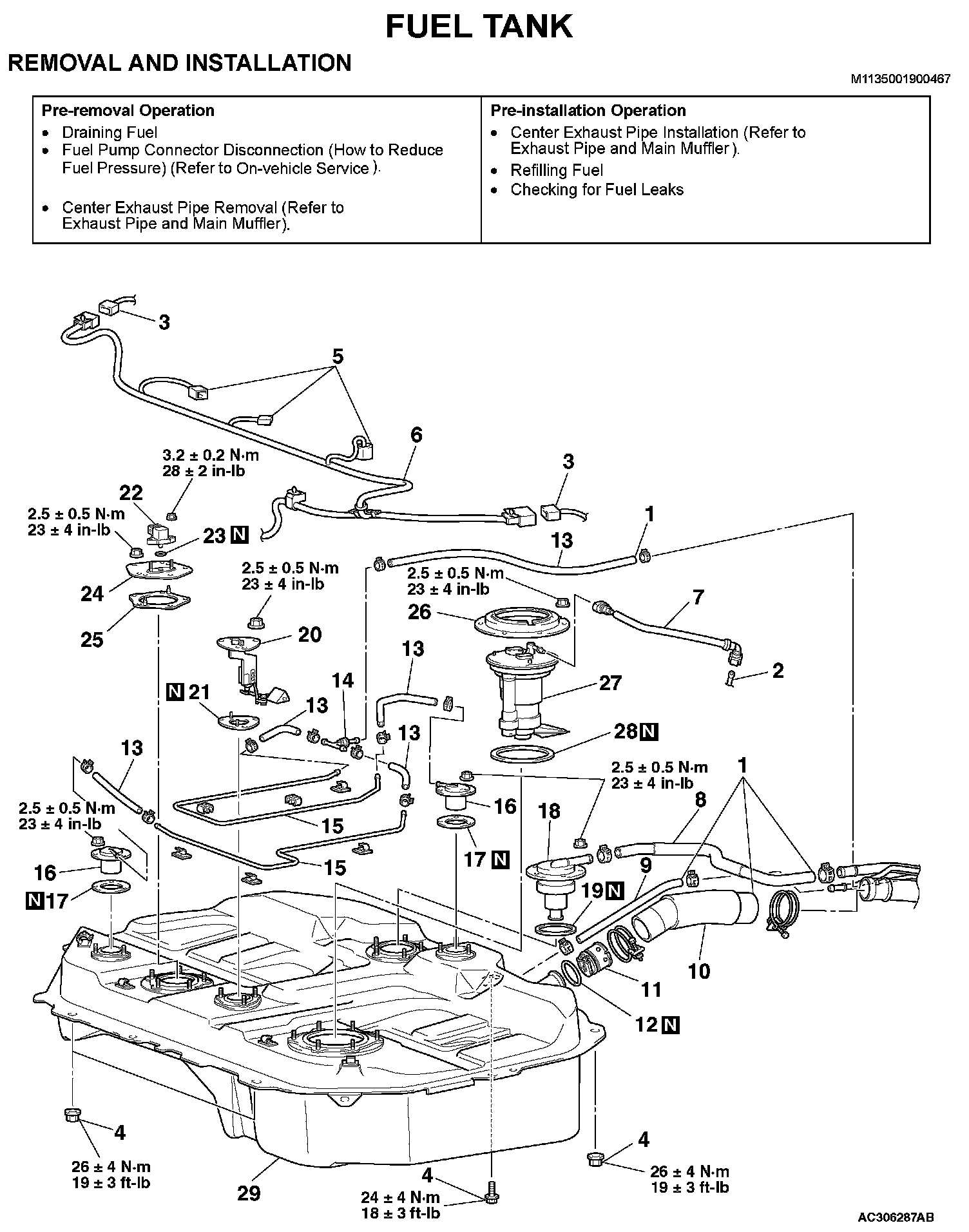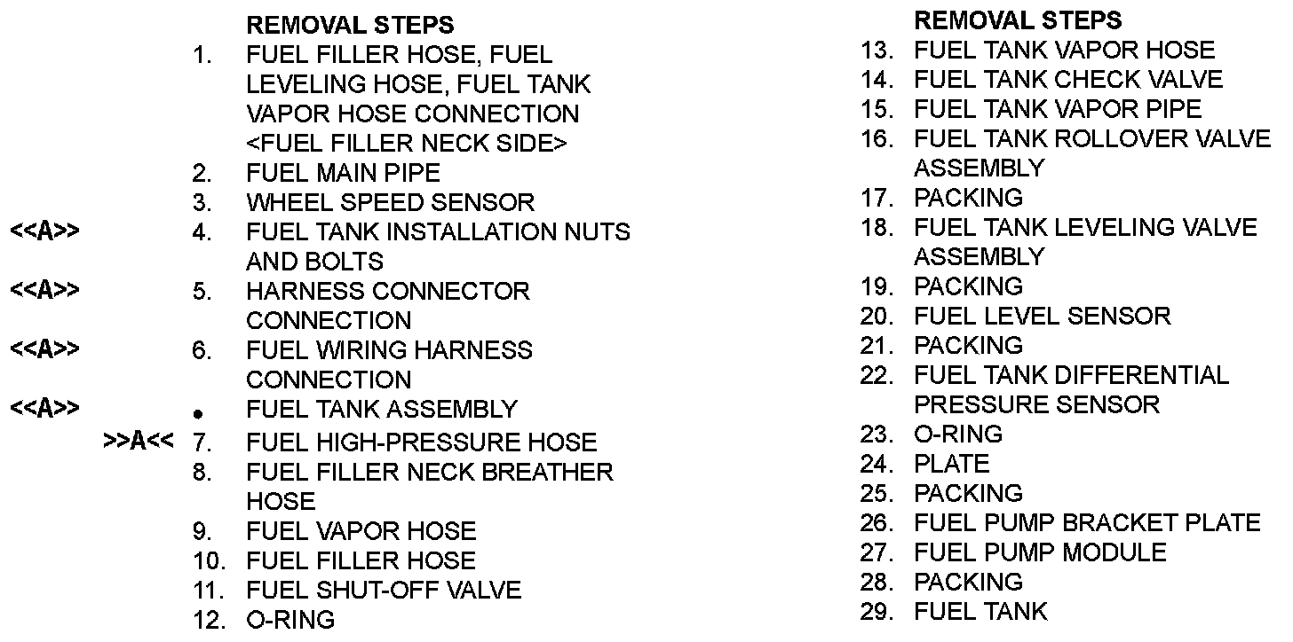 <> DISCONNECT HARNESS CONNECTOR/FUEL WIRING HARNESS/FUEL TANK ASSEMBLY REMOVAL