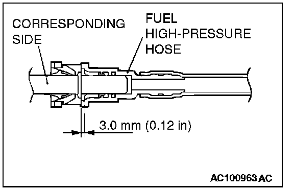 CAUTION: After connecting the quick action joint of the fuel high-pressure hose, pull the joint lightly away from the quick action joint to confirm that it is secure. In addition, confirm that there is a play of approximately 3.0 mm (0.12 inch) at the joint.