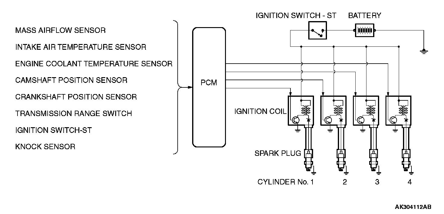 The PCM determines which ignition coil should be controlled by means of the signals from the camshaft position sensor which is incorporated in the camshaft and from the crankshaft position sensor which is incorporated in the crankshaft.