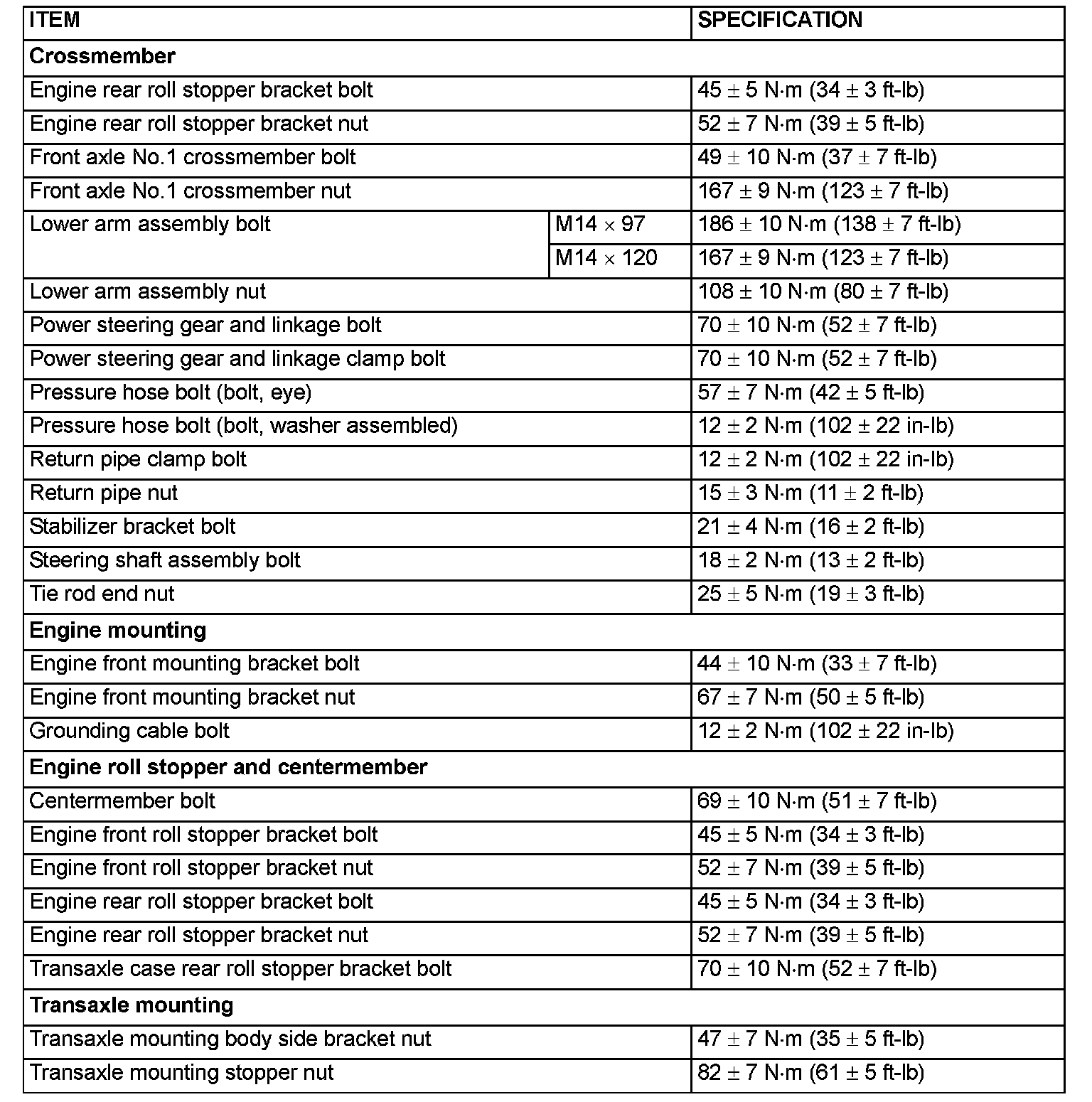 Fastener Tightening Specifications