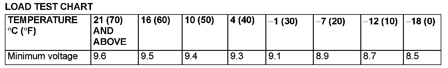 4. Compare the measured value with the minimum voltage (See LOAD TEST CHART).