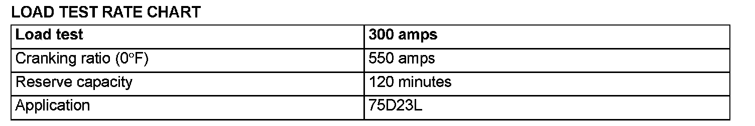 2. Load the battery at the recommended discharge rate (See LOAD TEST RATE CHART) for 15 seconds.