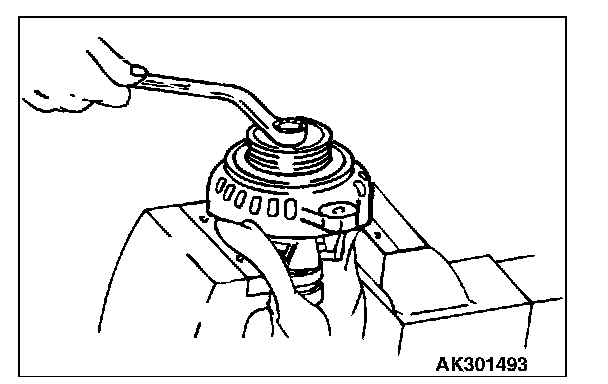Set the pulley upward, clamp the rotor in a vise, and remove the pulley.