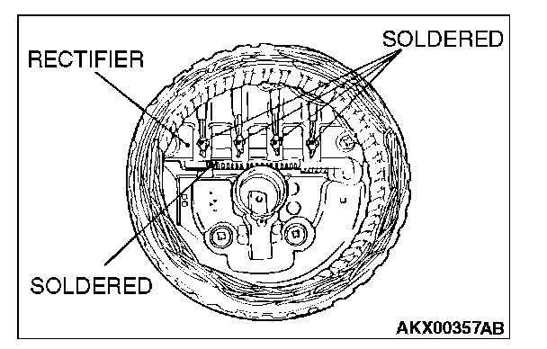1. Use a soldering iron (180 to 250 W) to unsolder the stator. This work should be completed within approximately four seconds, to prevent heat from transferring to the diode.