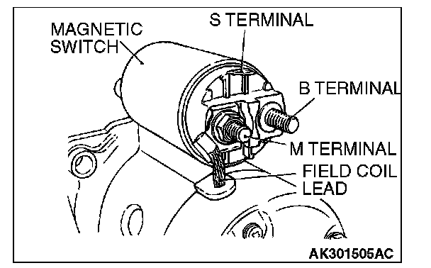 Disconnect the lead from the M terminal of the magnetic switch.