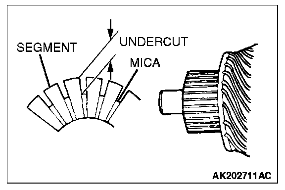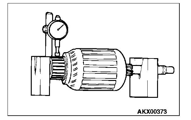 COMMUTATOR CHECK1. Place the armature on a pair of V-blocks, and check the deflection by using a dial gauge.