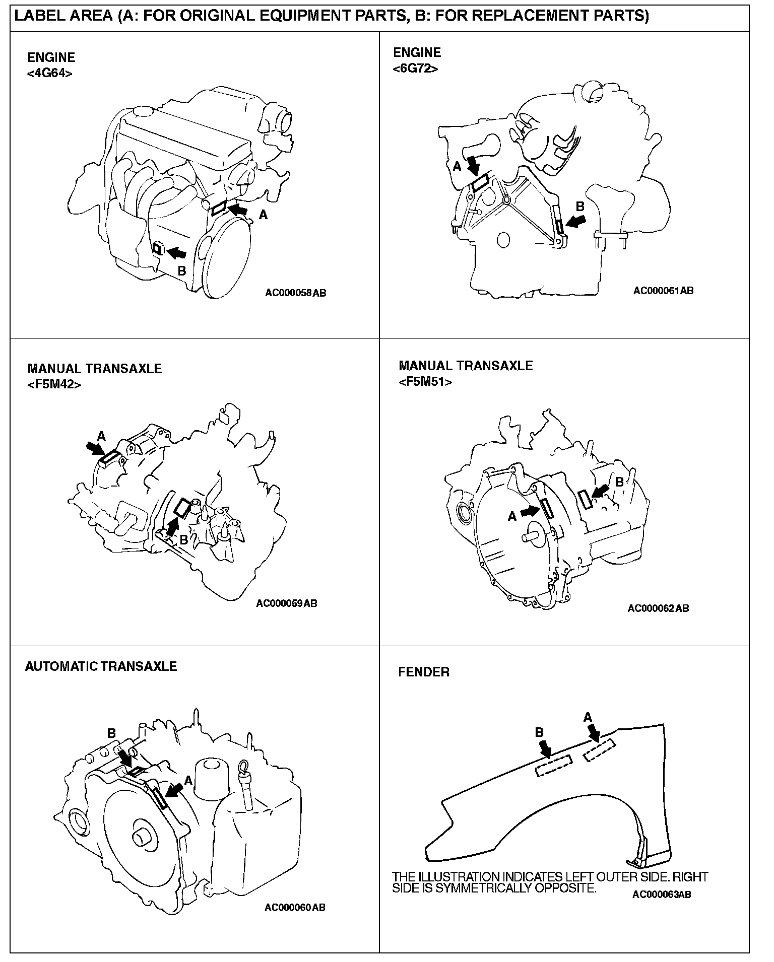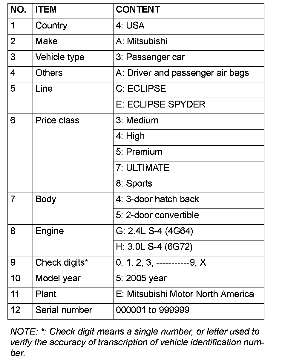 In order to protect against theft, a Vehicle Identification Number (VIN) is attached as a plate or label to the following major parts of the engine and transaxle, as well as main outer panels: