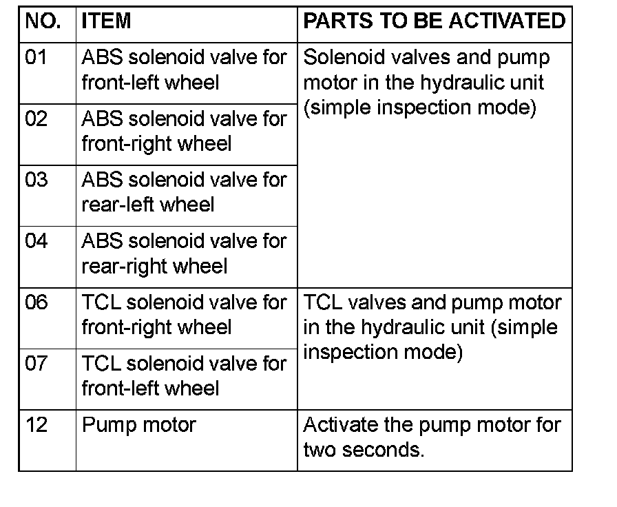 NOTE: If the ABS-ECU is inoperative, actuator testing cannot be carried out.
