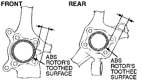 The clearance between the wheel speed sensor and the ABS rotor's toothed surface is not adjustable, but measure the distance between the sensor installation surface and the ABS rotor's toothed surface.