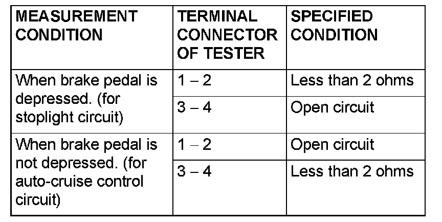 Brake Switch (Cruise Control): Testing and Inspection