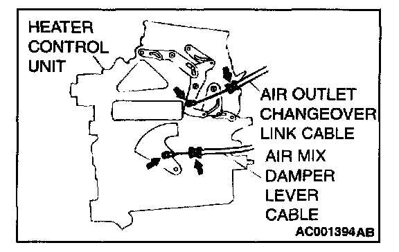 <> AIR MIX DAMPER LEVER CABLE, AIR OUTLET CHANGEOVER DAMPER LINK CABLE REMOVAL
