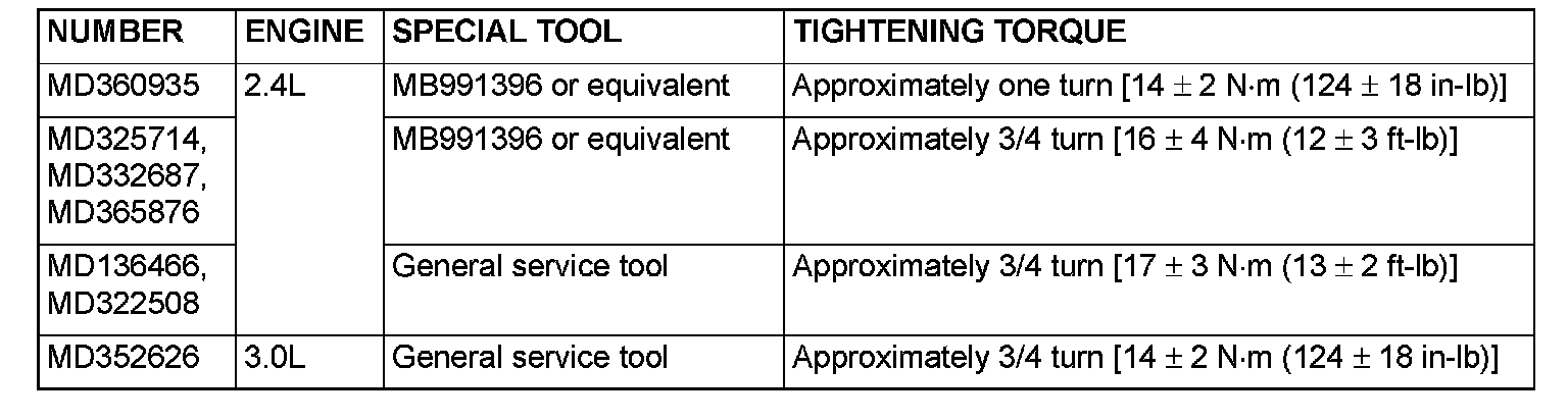 <2.4L Engine> MD1136466, MD322508, MD3257114, MD332687, MD360935, MD365876 or equivalent